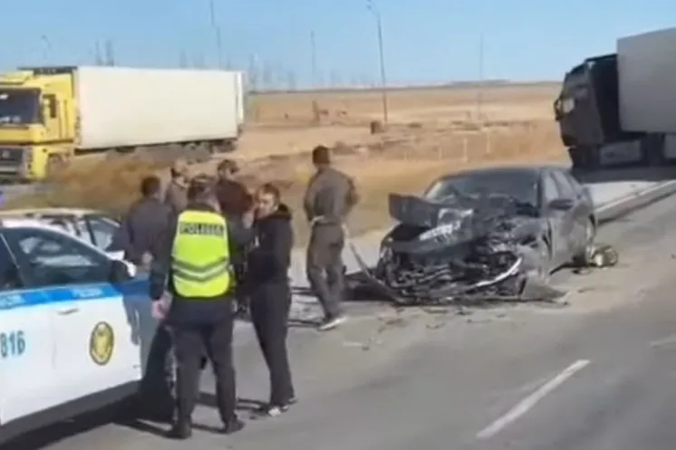 На 575-м километре трассы Атырау – Актобе днём 13 октября столкнулись Toyota Camry, грузовой Volvo и Hyundai Elantra.