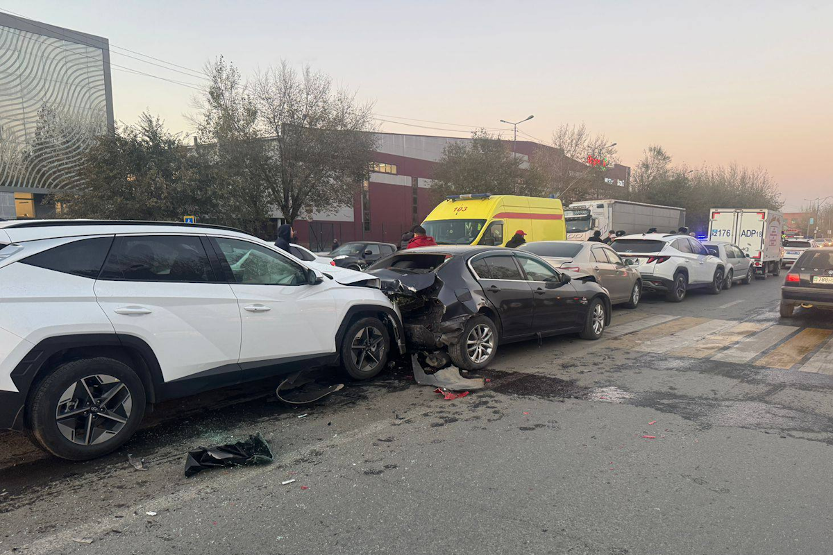В Семее 20 октября около 16:29 на улице Каржаубайулы произошло цепное дорожно-транспортное происшествие, в котором столкнулись сразу шесть автомобилей.