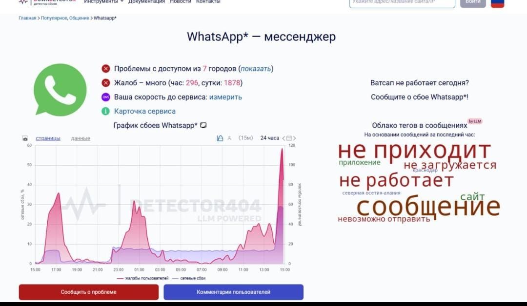 21 октября пользователи из Краснодарского края, Ростовской и Астраханской областей, Адыгеи и Ставропольского края пожаловались на сбои в работе Telegram и WhatsApp.