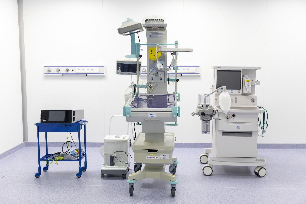 Новое отделение оборудовано по последнему слову медицины. Здесь установлены реанимационный столик, наркозно-дыхательный аппарат и рентген-установка MAC R32D, одна из самых безопасных для новорождённых. Она поступила напрямую с завода в Италии.