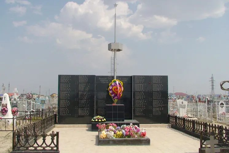 Имена шестидесяти четырех бойцов, умерших от ран и болезней в госпиталях Гурьева в годы Великой Отечественной войны, увековечены на мемориальной плите на христианском кладбище.