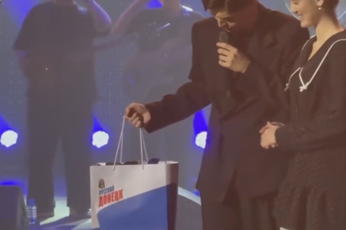 Российский певец Akmal' (Акмаль Ходжаниязов), недавно оказавшийся в центре скандала в Казахстане, вновь привлёк внимание публики — на этот раз во время концерта в Донецке, где он принял подарок в пакете в цветах российского триколора.