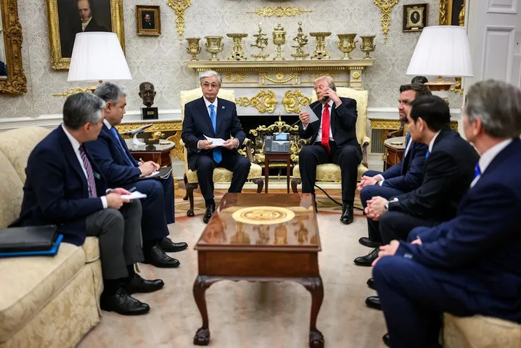 Белый дом опубликовал фотографии со встречи президента США Дональда Трампа и президента Казахстана Касым-Жомарта Токаева в Овальном кабинете.