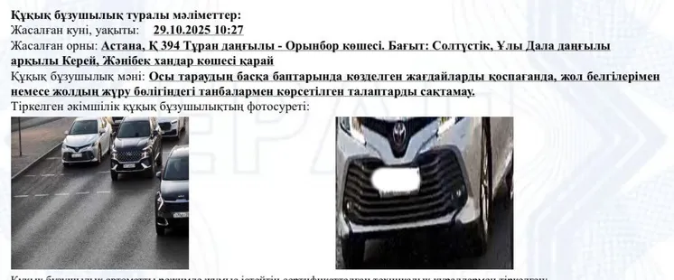 «Туран – Орынбор: 6 штрафов за один день, камеры оянды Астанада».