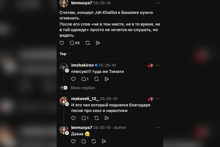 «Концерт в Казахстане не прошёл — теперь пытается в Кыргызстане. Но и здесь люди не согласны».