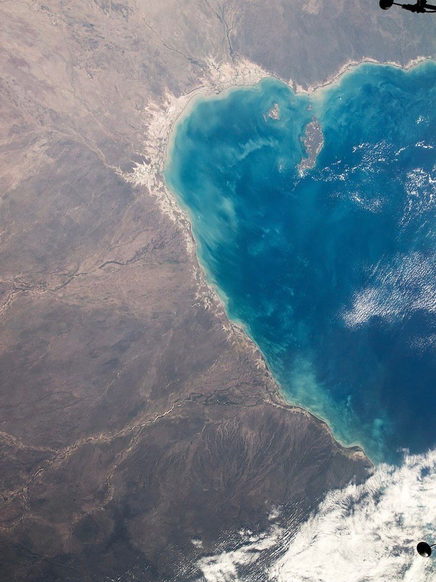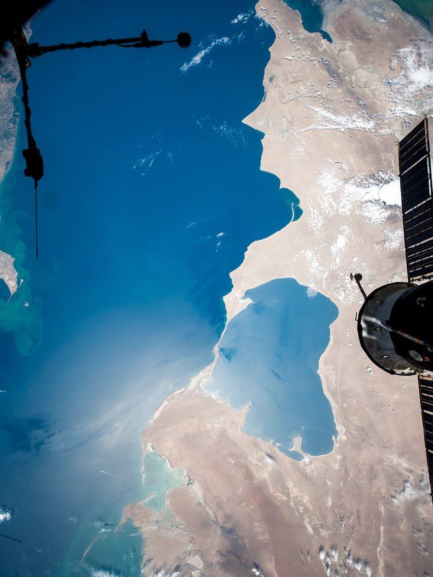 В его подборку вошли редкие кадры знаменитых заливов планеты, среди которых — Каспийское море и залив Кара-Богаз-Гол.