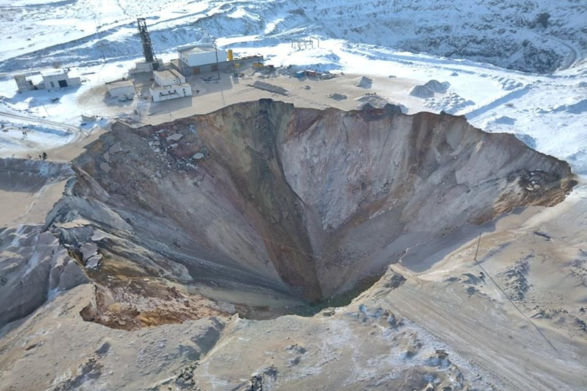 Инцидент случился 4 января 2024 года на технологической дороге, ведущей к руднику. Под дорожным полотном позже обнаружили пустоты старой недействующей шахты — глубиной до 150 метров и шириной около 500 метров.