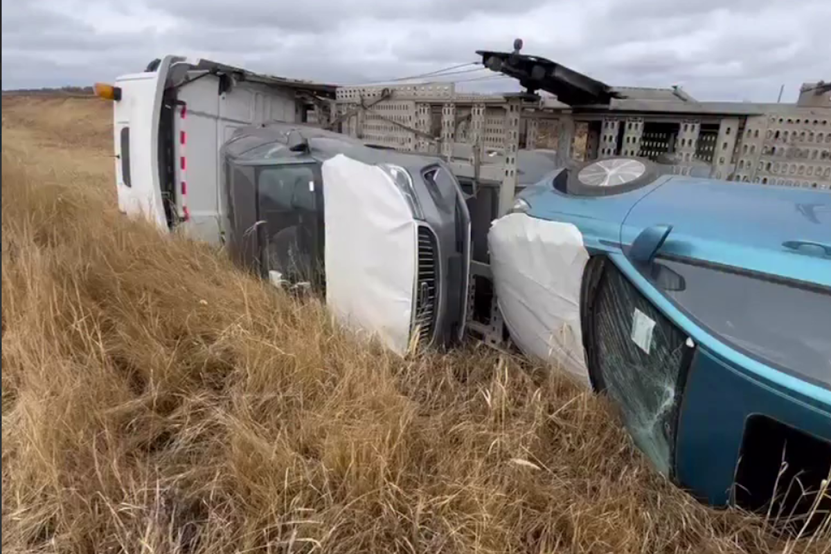 На борту находились 8 новых легковых автомобилей китайского производства. Водитель следовал из Алматы в Костанай, перевозя партию новых машин.
