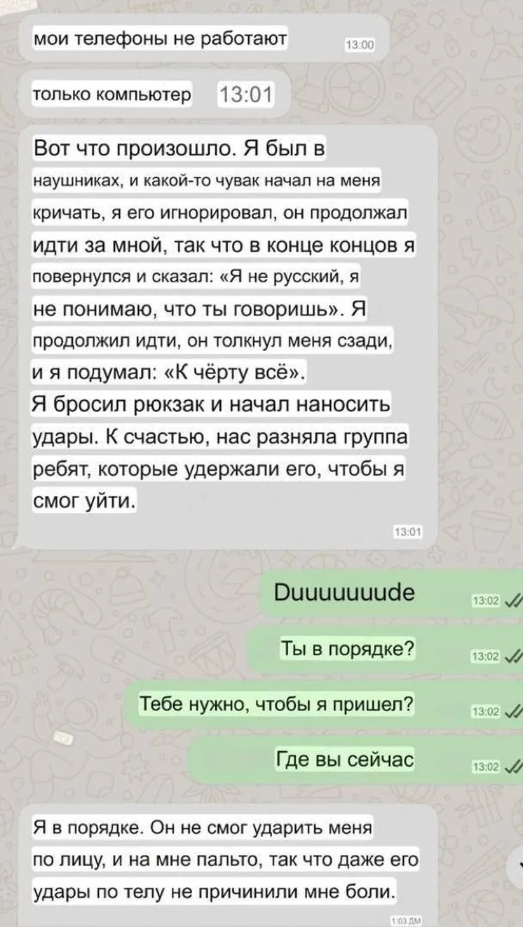конфликт был прекращён благодаря вмешательству группы молодых людей.