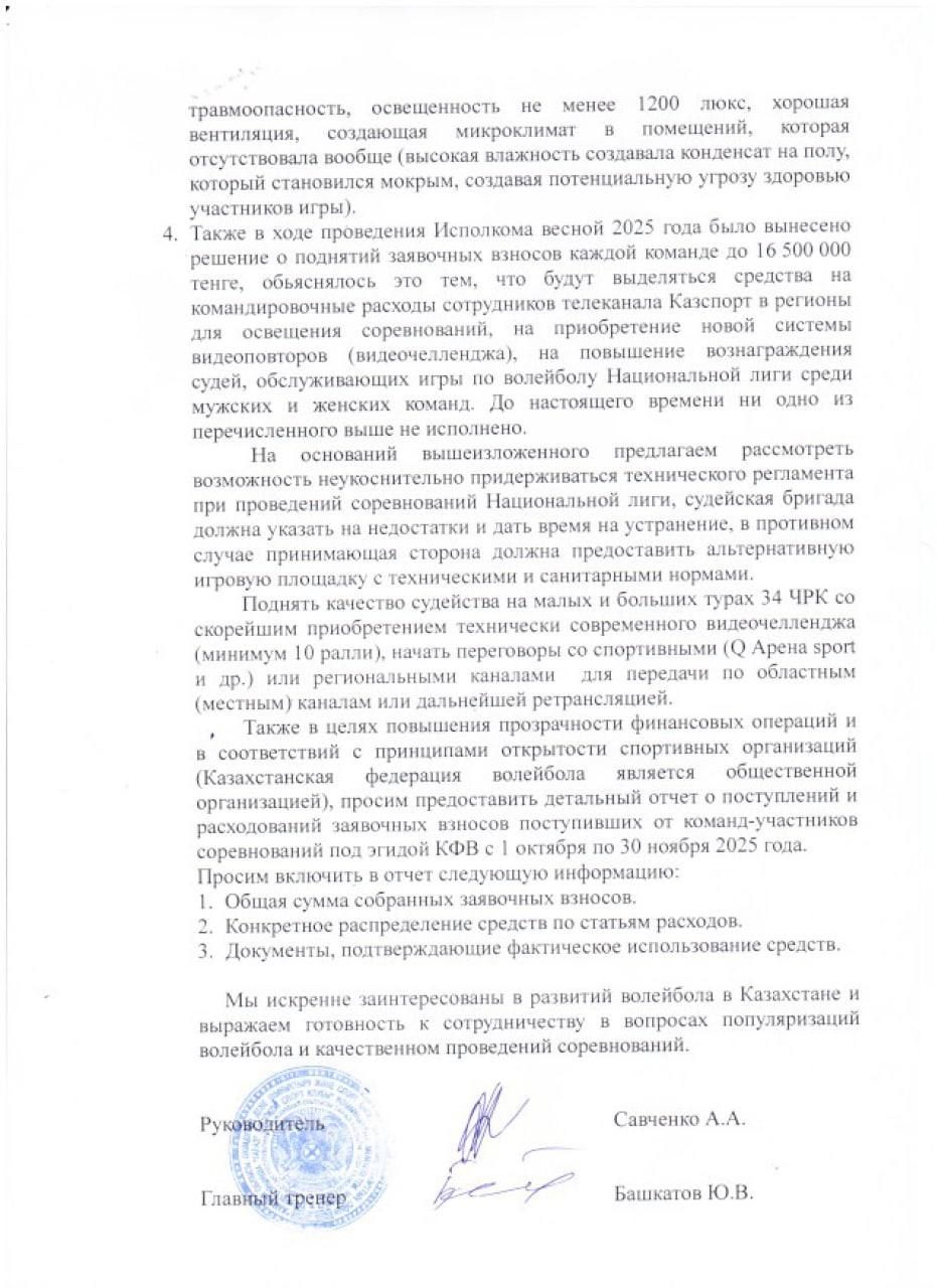 Таким образом, волейбольные клубы Казахстана настаивают на прозрачности работы федерации и надеются на оперативное рассмотрение своих претензий.
