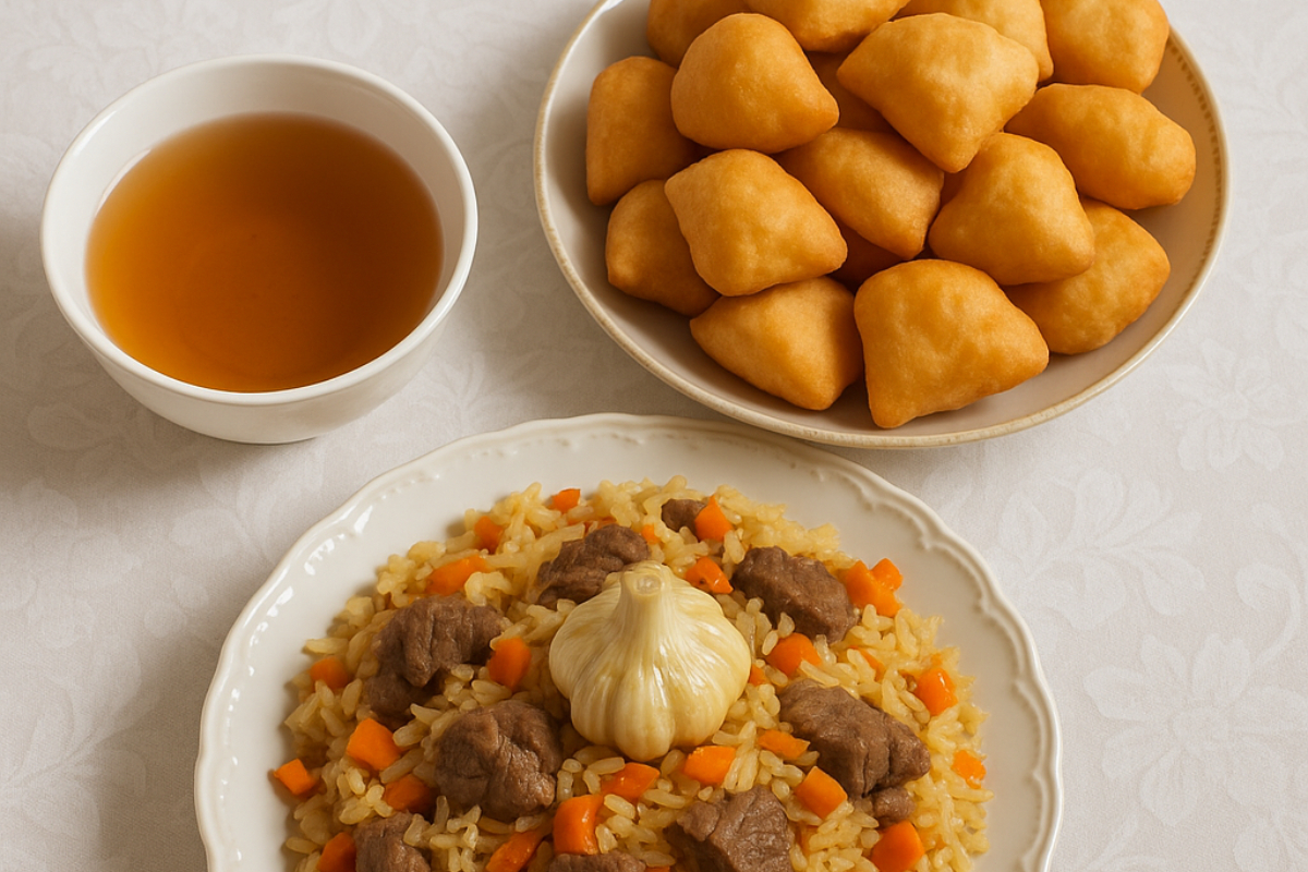 По новым правилам разрешено ставить на стол баурсаки, шелпек, чай, воду, из горячего — мясо или плов.