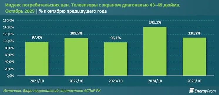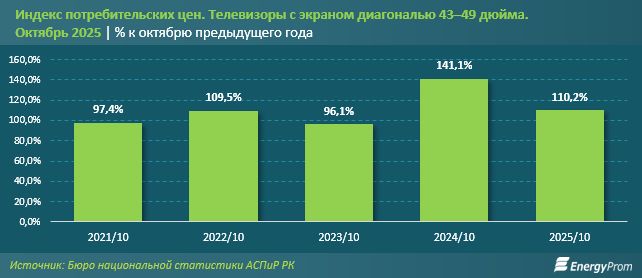 Рост цен на телевизоры (диагональ 43–49 дюймов) за год — 10,2 % (в 2024 году рост составил 41,1 %).