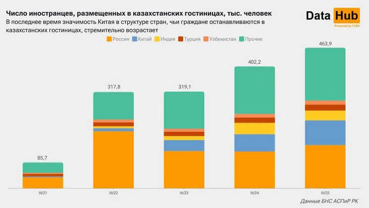 В III квартале 2025 года казахстанские гостиницы зафиксировали рекордный наплыв туристов из Китая, сообщает Data Hub.