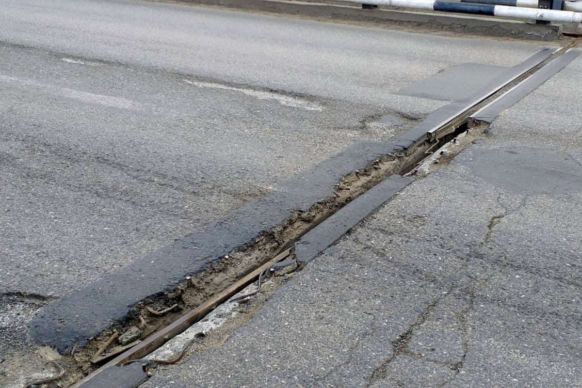 В местах соединения пролетов моста появились зазоры, из которых видны конструктивные элементы.