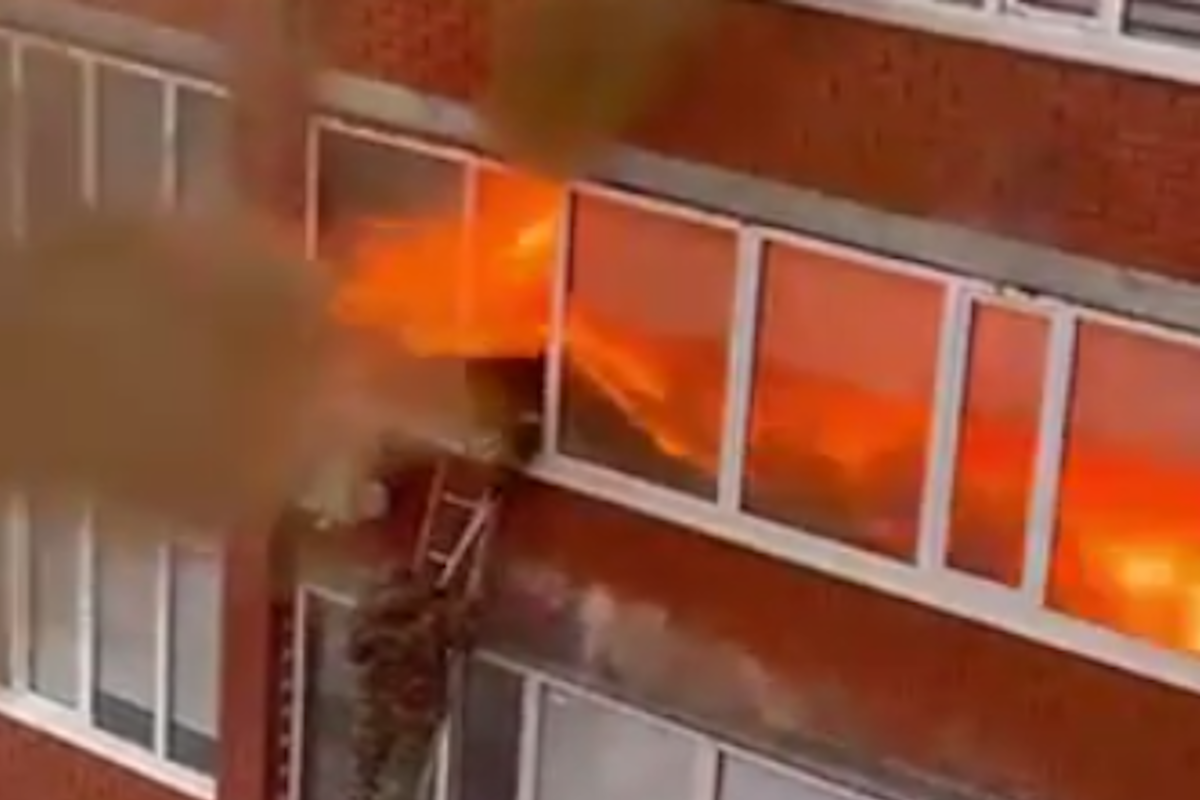 Тушение пожара было осложнено хлопком газовоздушной смеси, в результате которого были выбиты оконная рама и балконная перегородка.