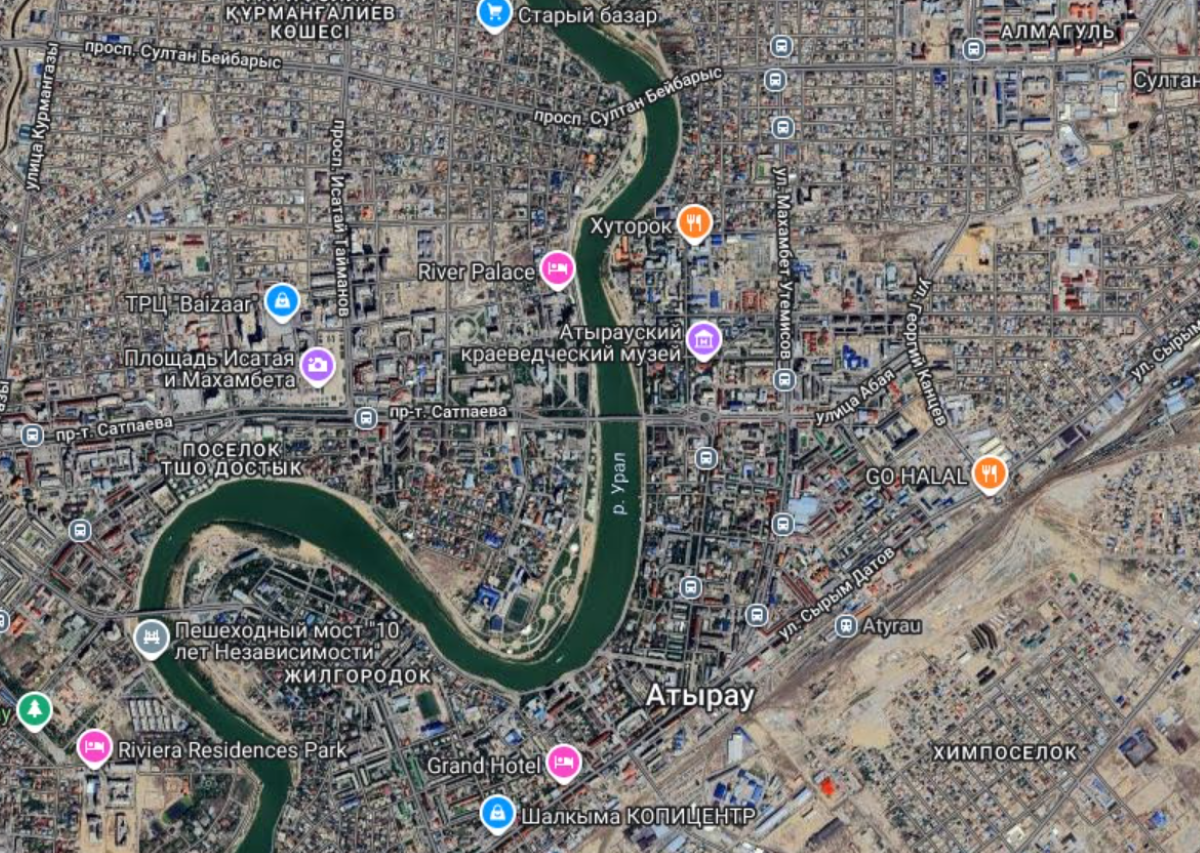 Промышленные зоны и река Урал