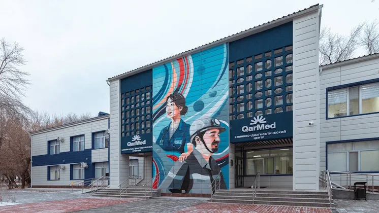 После шахты делегация направилась в клинико-диагностический центр АО «Qarmet», который открыл свои двери 1 октября 2025 года. Ранее здесь размещались подрядные медицинские организации, а во время пандемии — ковидный госпиталь. После этого медицинский комплекс пустовал и пришёл в удручающее состояние.