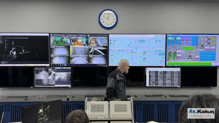 Далее журналисты направились в центральный диспетчерский пункт, который является по сути мозгом шахты. Именно туда стекается вся информация о жизненно важных показателях внутри шахты на глубине 700 метров: система видеонаблюдения, система вентиляции, котельная, система откачки воды, цифровая платформа DMMS (Digital Monitoring and Management System) и др.