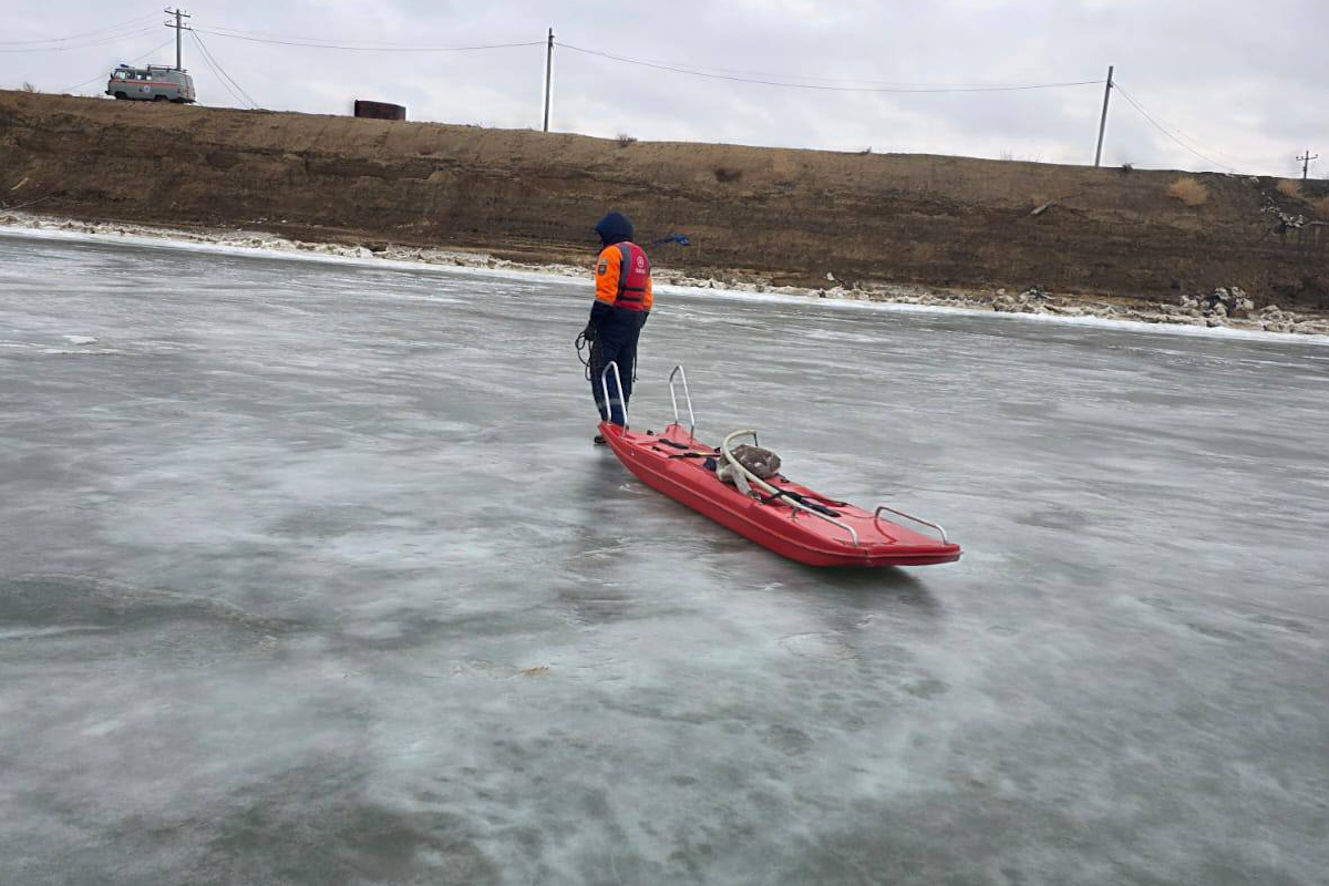 В Атырау спасатели МЧС пришли на помощь птенцу лебедя, который оказался на льду канала «Бугарки» реки Жайык.