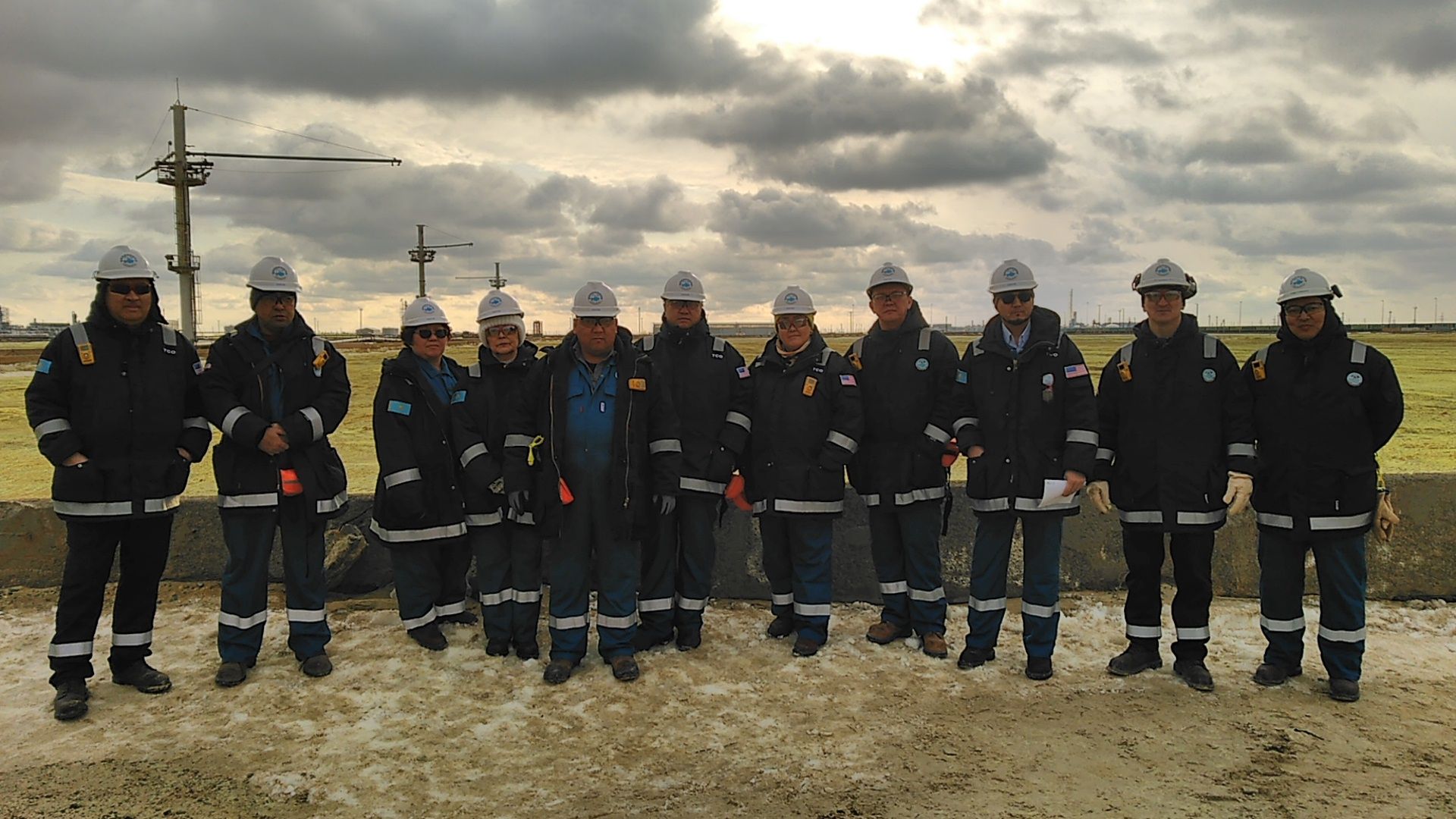 Перед входом на производственную территорию участники визита прошли обязательный инструктаж по технике безопасности и получили средства индивидуальной защиты. Такой порядок действует для всех посетителей объекта и является стандартным требованием при работе на промышленных площадках, в том числе и ТШО, где безопасность является одним из основных приоритетов.