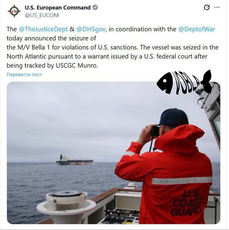 Как уточняется, «Маринера» двигалась в Северной Атлантике, выйдя от побережья Венесуэлы, и находилась примерно в 4 тыс. километров от территории США. Ранее танкер носил название Bella 1 и в 2024 году был включён в санкционные списки США.