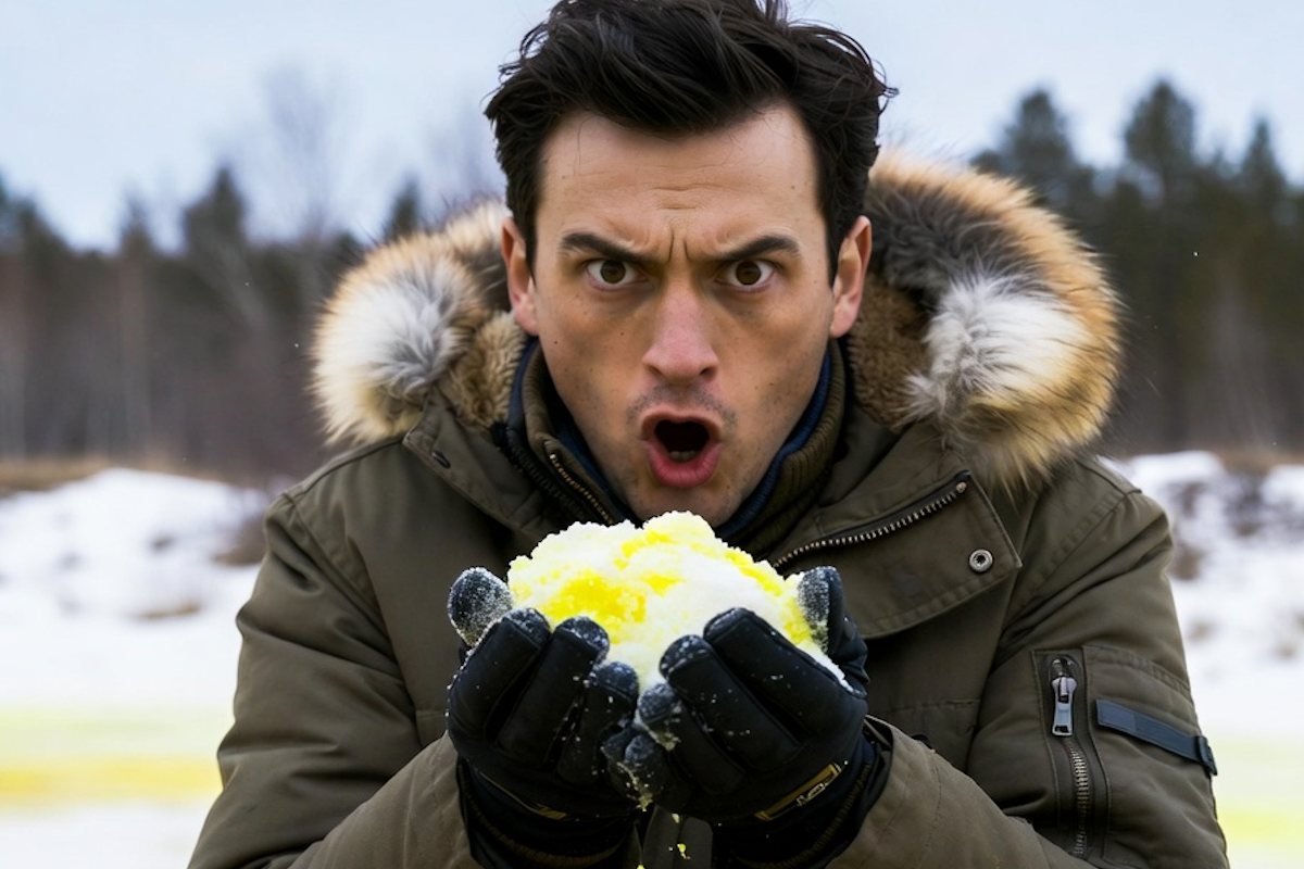 В Усть-Каменогорске жители сразу нескольких районов 12 января заметили необычный цвет снега — от жёлтого до розового.