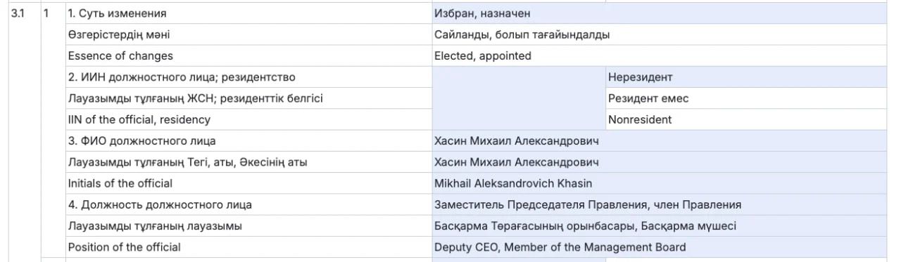 "Вечером 27 января информация о его назначении была опубликована в Депозитарии финансовой отчётности. В размещённом документе указывается, что Михаил Хасин – нерезидент Республики Казахстан. Решение о его назначении было принято советом директоров банка 19 января", - передает exclusive.kz.