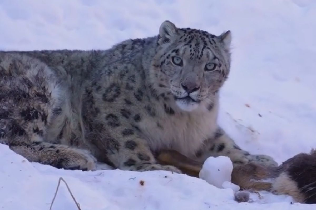 Как сообщили в Институте зоологии, в последние дни в социальных сетях активно распространялись видео со снежным барсом, который во время охоты спустился на относительно низкую высоту в Большом Алматинском ущелье.