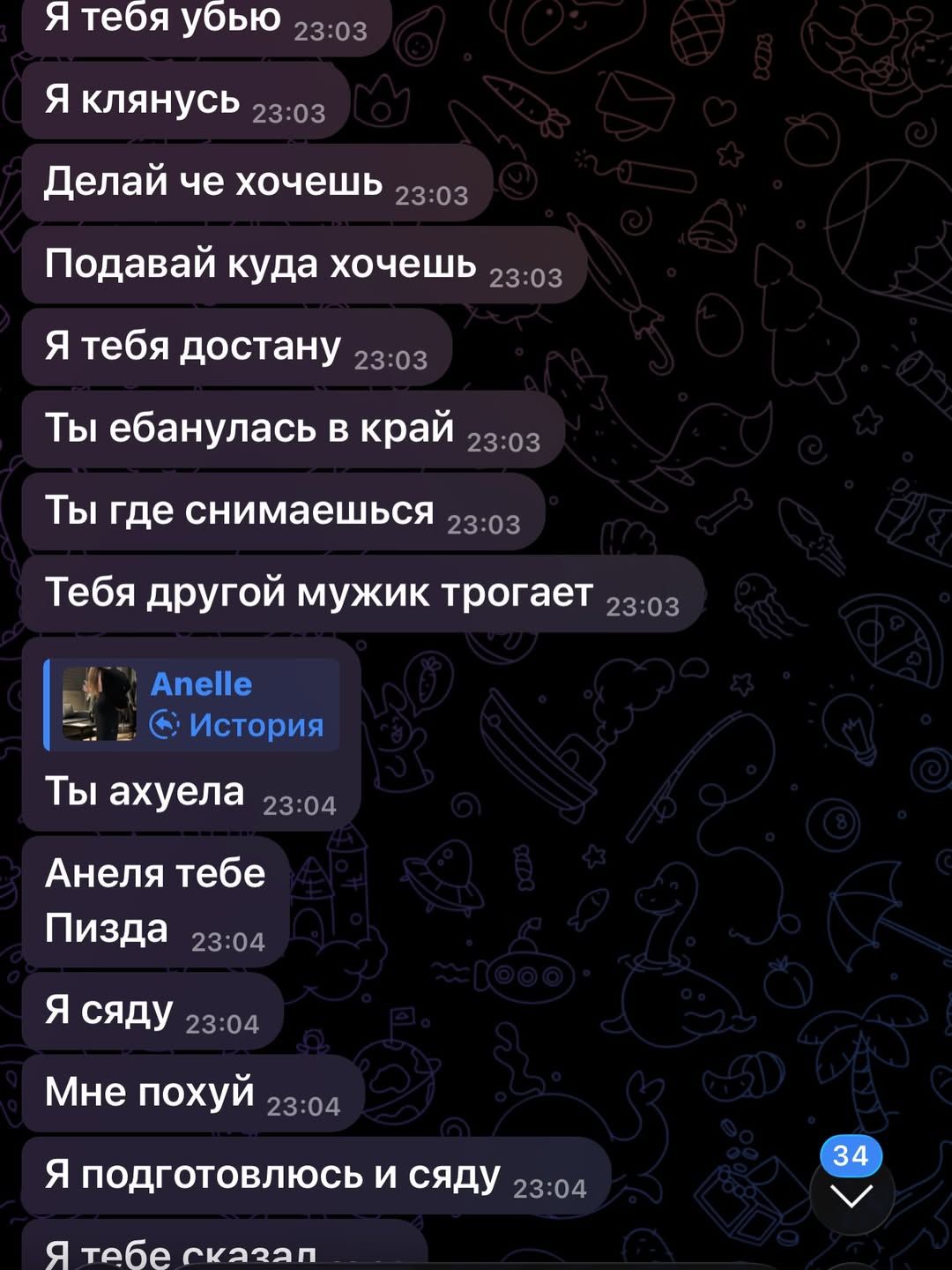 После того как Анеля, по её утверждению, стала полностью игнорировать супруга и открыла собственное дело, преследование усилилось. Она заявляет, что мужчина создавал фейковые аккаунты, писал её знакомым и клиентам, а также угрожал распространением интимных фото и видео.