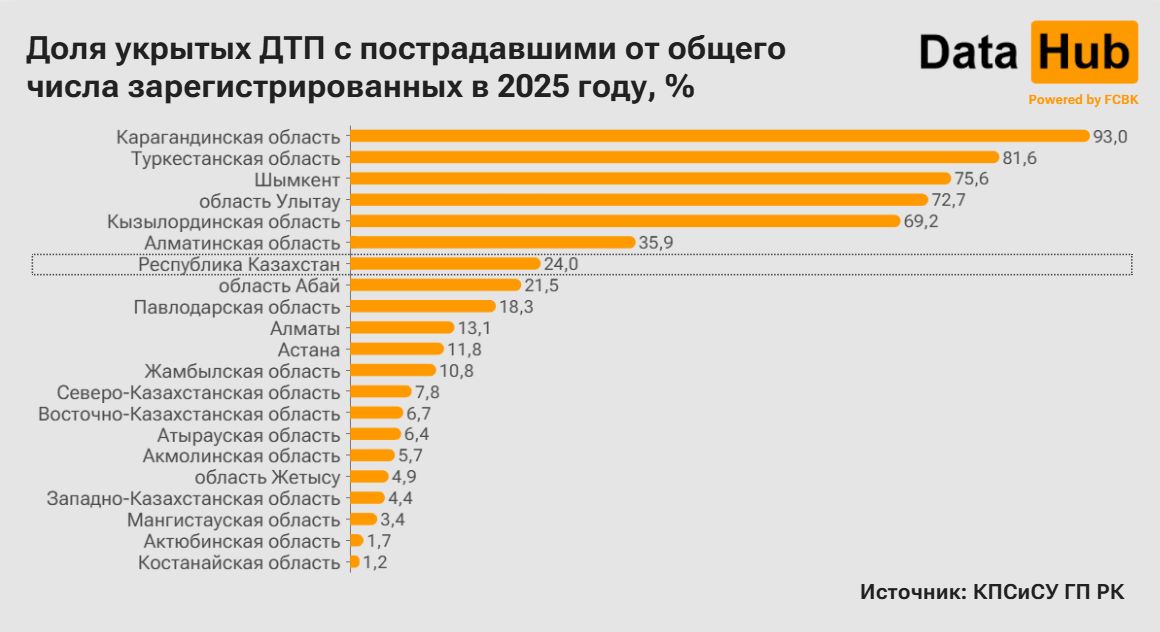 В официальной правовой статистике за 2025 год появился новый показатель — доля укрытых от специального учета дорожно-транспортных происшествий с пострадавшими. По данным Комитета по правовой статистике и специальным учетам Генеральной прокуратуры, он составил 24%. Формально это означает, что каждая четвертая авария с погибшими или ранеными не была поставлена на специальный учет, сообщает Data Hub.