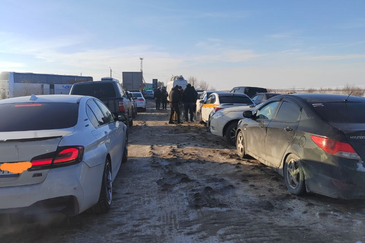 Люди сообщают, что время ожидания достигает шести–семи часов. Нейтральная территория полностью заполнена автомобилями, а колонна грузовых фур на выезде из Казахстана растянулась примерно на шесть километров.