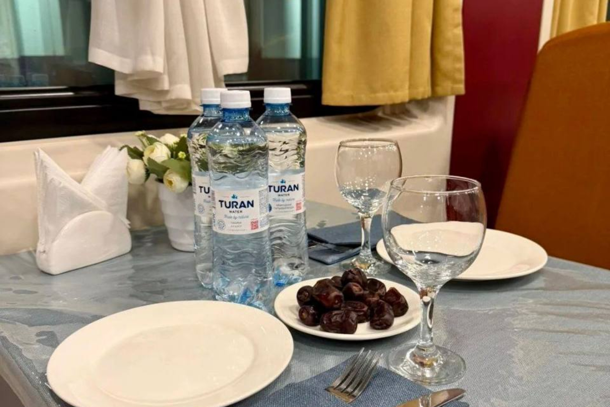 Во время ауызашара (ифтара) в вагонах-ресторанах пассажирам бесплатно будут предоставляться вода и финики. Кроме того, в часы ифтара продажа алкогольной продукции осуществляться не будет.
