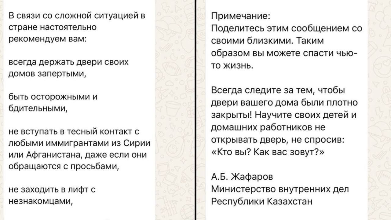 В социальных сетях и мессенджерах распространяется «срочное объявление» якобы от представителя Министерства внутренних дел Казахстана с упоминанием мигрантов и похищений детей.