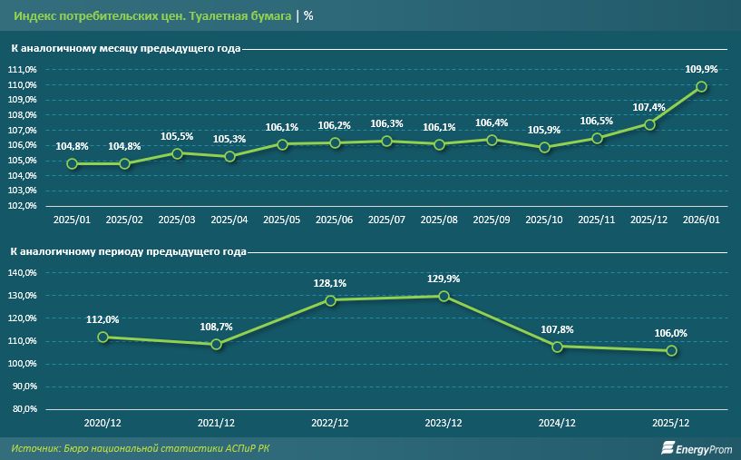 Такой разрыв объясняется удорожанием сырья, логистики и ростом цен на конечную продукцию. Тем не менее, для потребителя ситуация остается относительно стабильной. Если в 2022–2023 годах цены на туалетную бумагу взлетали на 28–30%, то по итогам 2025 года рост составил всего 6%. Однако начало 2026 года уже отметилось инфляционным скачком на 9,9%.