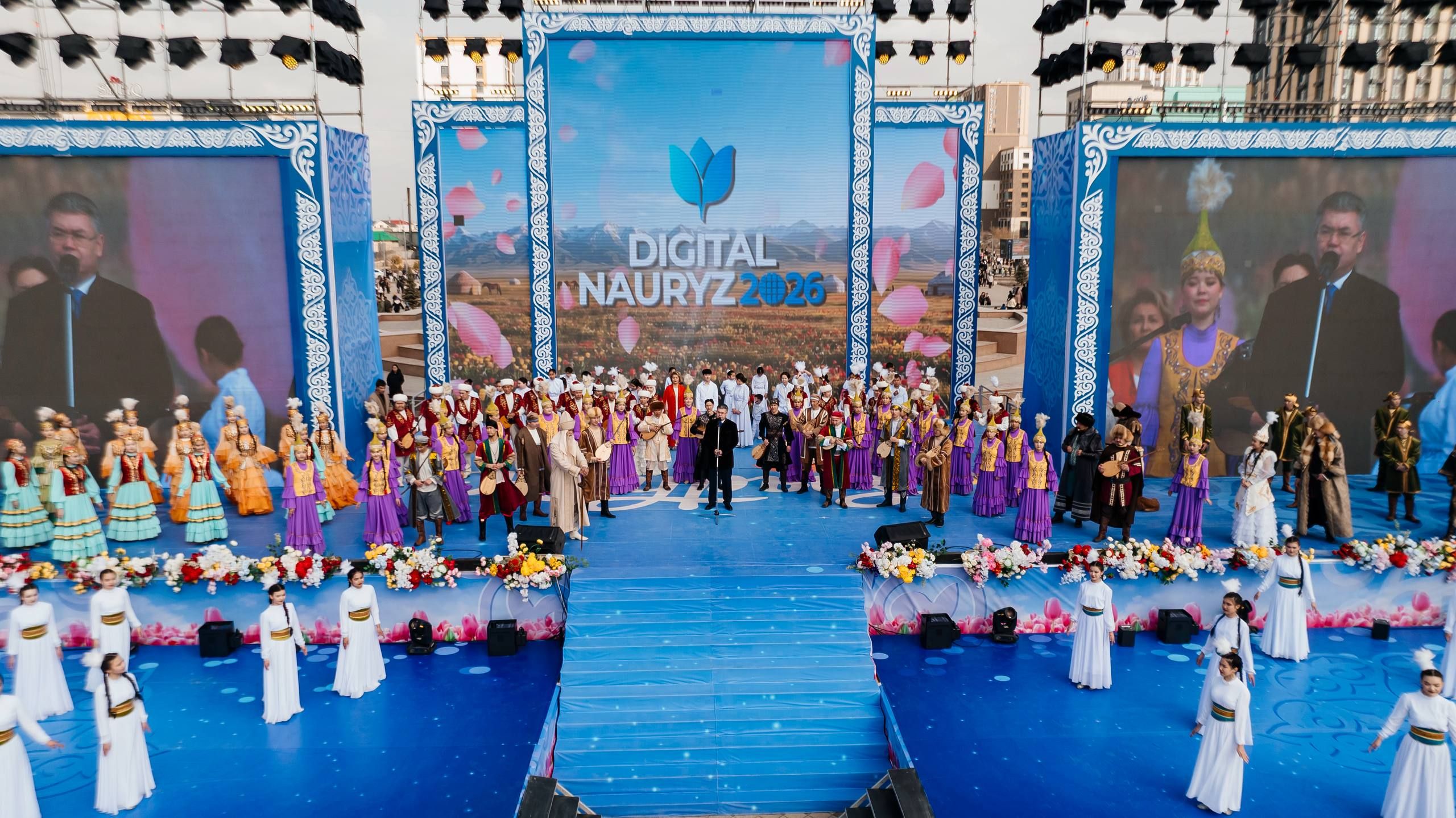 Праздник начался с театрализованной программы «Қош келдің, әз-Наурыз», которая переросла в масштабное мюзикл-шоу с яркими костюмами и постановками.