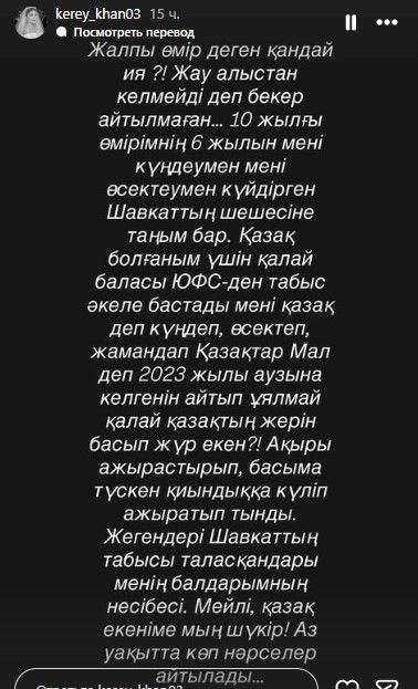 В своей публикации Рахмонова заявила, что на протяжении многих лет подвергалась унижениям и оскорблениям. Она также утверждает, что со стороны родственников Шавката звучали высказывания оскорбительного характера в адрес казахов.