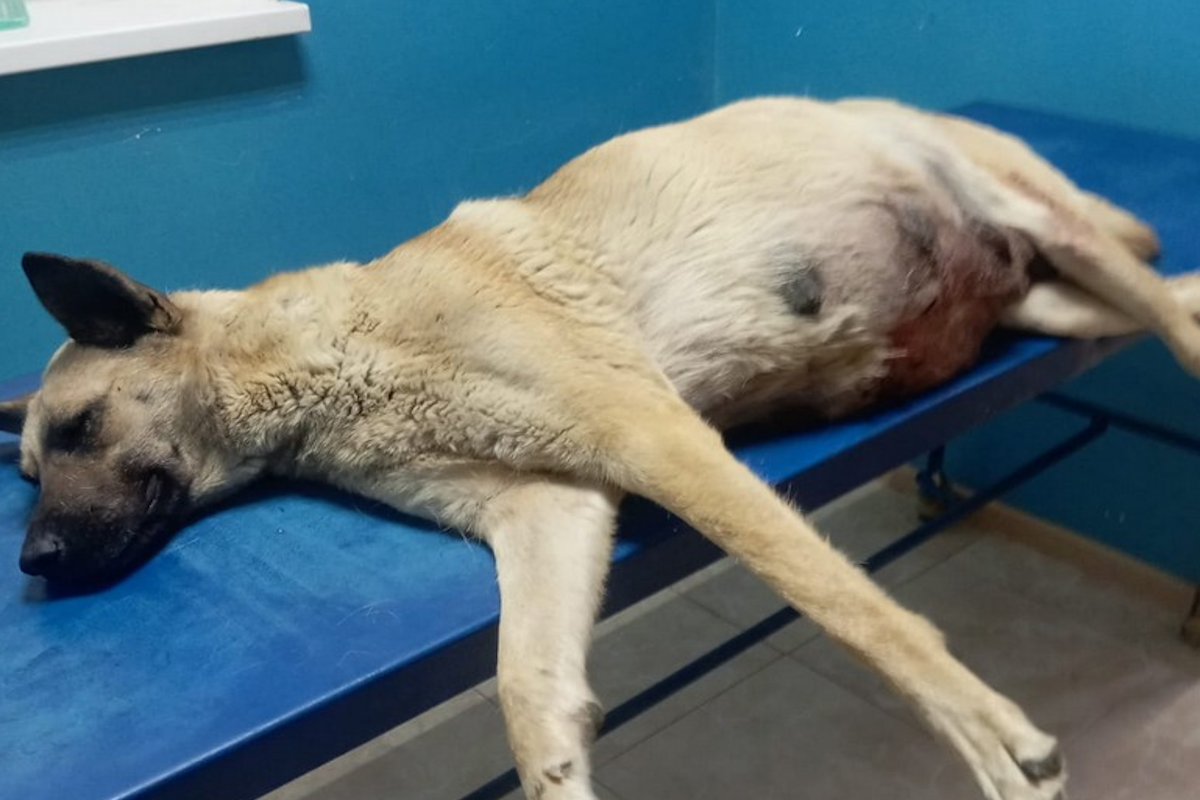 Собаку доставили в клинику «Zoo Лекарь» в селе Акшукур. По данным ветеринаров, рана была нанесена ножом, при этом серьезно пострадала матка. У животного было 12 щенков, из которых выжили только четверо. Щенков позже передали на выкармливание другой собаке.