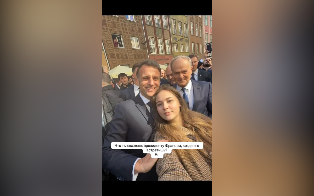 Россиянка сделала селфи с президентом Франции Эммануэлем Макроном и обратилась к нему с фразой из мема.
