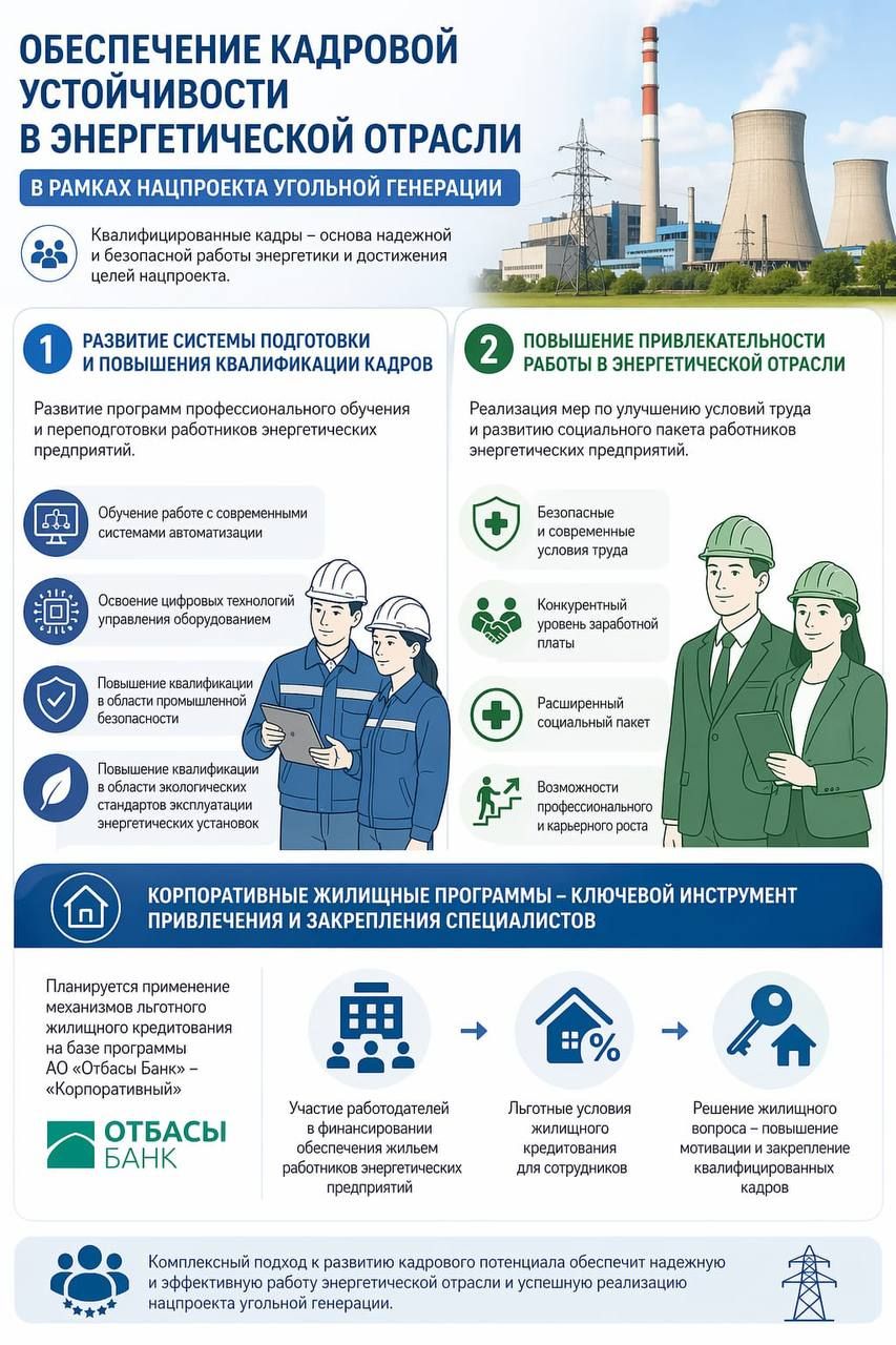 Как сообщили в министерстве энергетики, такая мера предусмотрена в рамках Национального проекта «Развитие угольной генерации». Особое внимание в документе уделено кадровой устойчивости энергетической отрасли.