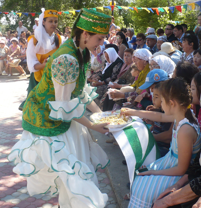 В программе праздника был концерт хора татарских бабушек, свои номера показали гости из Татарстана, участие приняли и местные артисты татарского и других этнокультурных центров. Пока взрослые смотрели концерт и угощались национальными яствами, для детей неподалеку на футбольной площадке были организованы соревнования: бег с ложками, перетягивание каната, битье подушками. А самые сильные имели возможность состязаться на ловкость, взобравшись на высокий столб, увенчанный призами, испытать силу с гирей в руках.