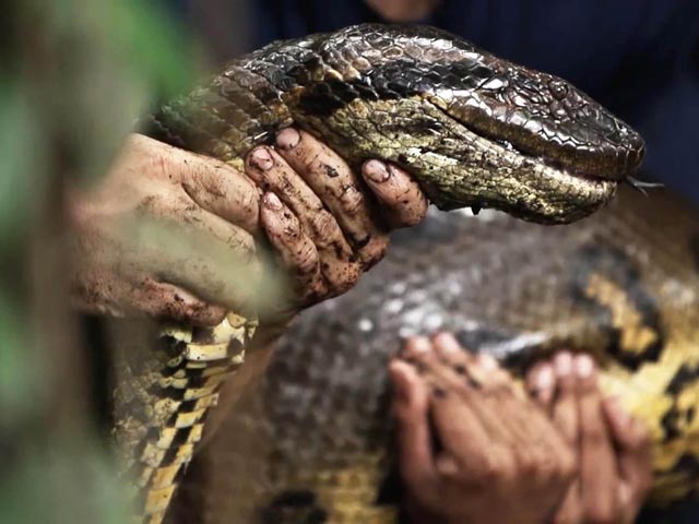 Для того, чтобы снять экстремальное видео, команда Розали, в которую входит и его юная жена, несколько месяцев выслеживали гигантских змей в верховьях Амазонки, напоминает The Daily Mail. Наконец, когда все было готово, натуралист надел черный бронированный костюм и облился свиной кровью. Все шло как надо - анаконда набросилась на жертву и начала заглатывать, начиная с головы. Однако Розали почувствовал, что его руки "начинают ломаться" и дал команду своим соратникам, натуралистам, врачам и ветеринарам, спасти его.