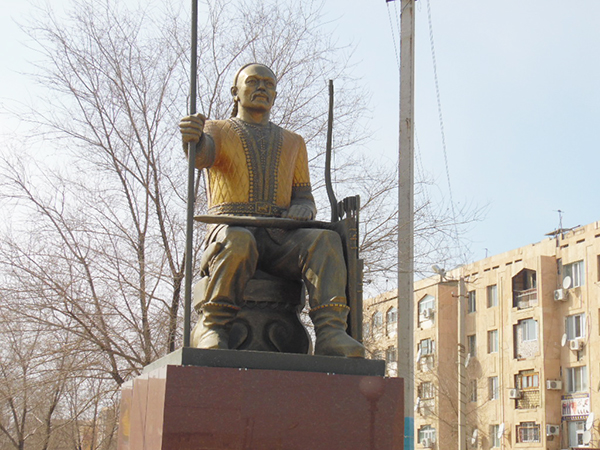 На въезде в город Кульсары установлена скульптура Матери в белом кимешеке – это работа известного скульптора Серика МАТЕНИЯЗОВА.