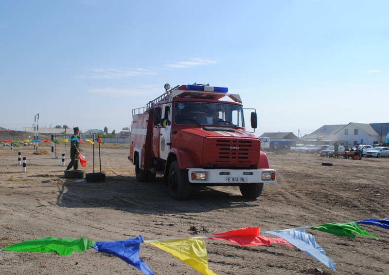 – После звонка тревоги пожарный автомобиль срывается с места в считанные минуты и направляется к месту возгорания. Добраться необходимо как можно быстрее, но как это сделать, если в городе пробки, неуступчивые водители, а подъезды к жилым и административным зданиям загромождены частными машинами? – эмоционально вопрошает главный специалист отделения пожарной техники и оборудования ГУ «СП и АСР» ДЧС Атырауской области Рафит КАЙРИДЕНОВ. – Огромная нагрузка в таких случаях ложится на водителя пожарного автомобиля: он в ответе за сохранность машины, за жизнь боевого расчёта, а в конечном итоге и за успех в тушении пожара. Соревнования проходили в два основных тура: теория и практика. В теории водители продемонстрировали свои знания правил дорожного движения и спецтехники. В практической части конкурсанты показывали водительское мастерство на пожарных автоцистернах. Сначала водителю надо въехать в круговой тоннель с внутренним кругом. Его ширина лишь немного превышает габариты пожарного ЗИЛа, а каждая задетая ограничительная вешка – это лишние 10 очков штрафа. Выезжая из круга, водитель попадает в колею, которая представляет собой две пары деревянных брусков. Пожарный ас должен проехать колею на переднем ходу правыми колёсами, не задев ограничителей. Затем крутой вираж и задним ходом пожарная машина въезжает в бокс – площадку, огороженную стойками. Впереди у пожарного водителя ещё одно сложное задание – проезд змейкой передним и задним ходом.