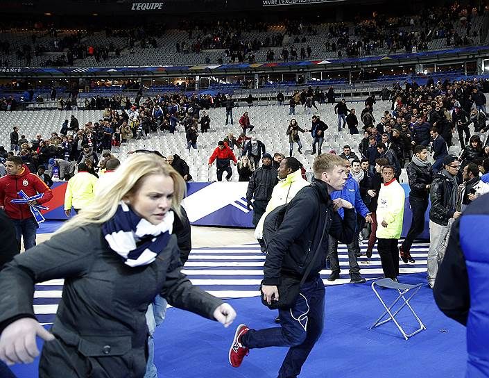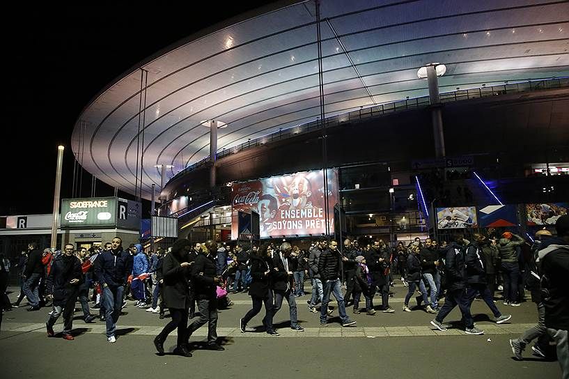 Кроме того, произошел взрыв в баре неподалеку от стадиона Stade de France в пригороде Парижа, где в это время проходил товарищеский футбольный матч между сборными Франции и Германии. На встрече присутствовал президент Франции Франсуа Олланд и несколько других высокопоставленных чиновников, они были эвакуированы.
