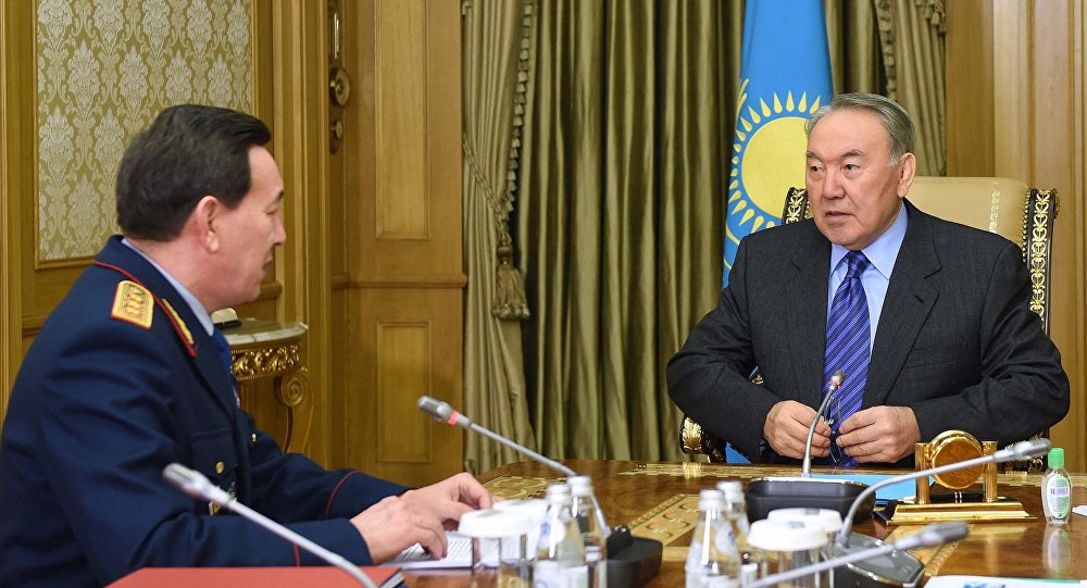 По информации пресс-службы, Назарбаев встретился с министром внутренних дел Калмуханбетом Касымовым. В ходе встречи министр доложил главе государства о реализуемых мерах в рамках реформы правоохранительной системы, первых итогах работы местных полицейских служб, деятельности по усилению борьбы с преступностью и обеспечению правопорядка в стране.