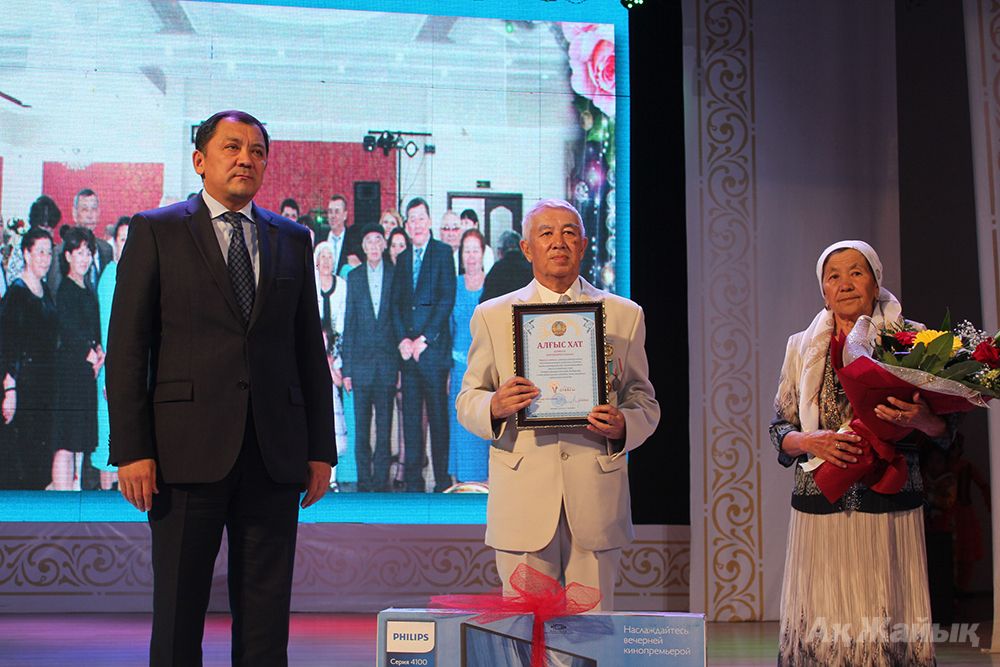 А Сандыбай ата из села Сагиз Кызылкогинского района, который удостоился благодарственного письма, вот уже 52 года живет рука об руку со своей супругой Акбилек апай. У них семеро детей (два сына, пять дочерей), 23 внука и 5 правнуков. Акбилек апа 33 года проработала учительницей по математике, из них 14 лет завучем.