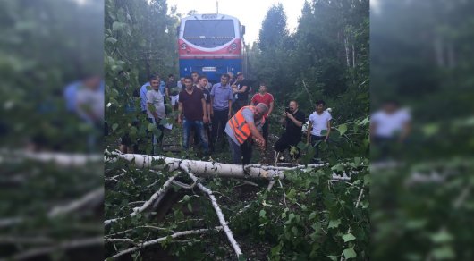 Фото: Пресс-служба КТЖАСТАНА, 7 июл — ИА Новости-Казахстан. Поваленные на рельсы из-за непогоды деревья едва не стали причиной крушения пассажирского поезда сообщением "Астана-Лениногорск", сообщила в четверг пресс-служба национальной компании КТЖ.