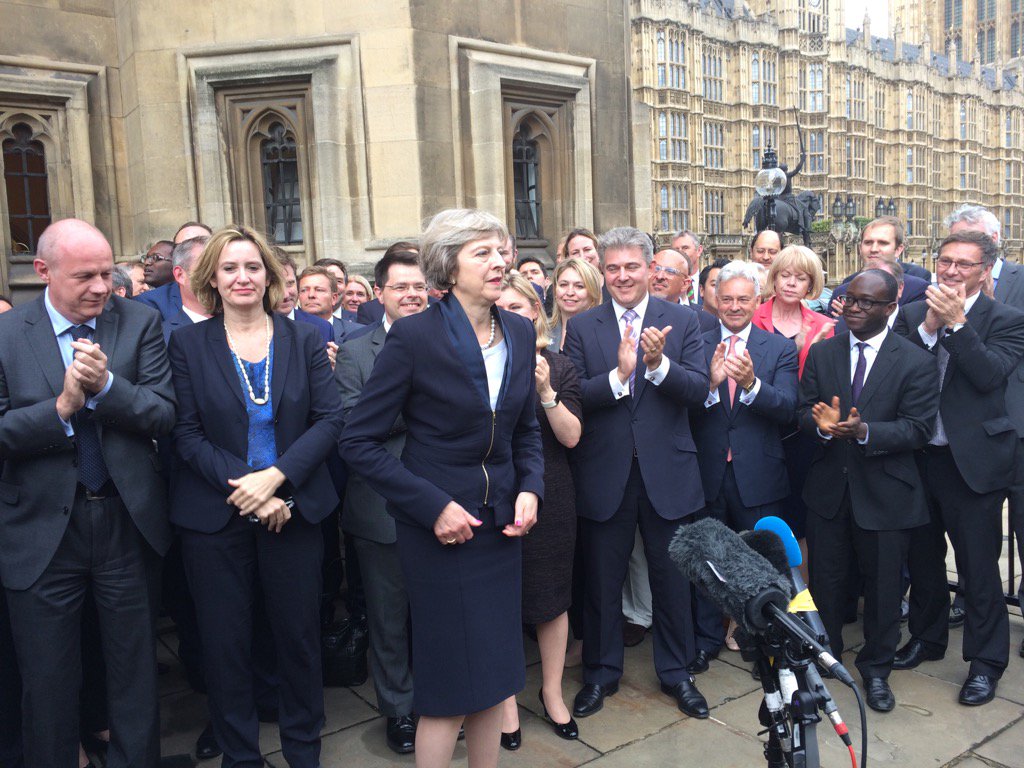 Мэй осталась единственным и безальтернативным кандидатом тори после того, как единственная ее конкурентка, заместитель министра энергетики Великобритании Андреа Лидсом объявила, что "эта ноша очень тяжела для нее", и вышла из гонки.