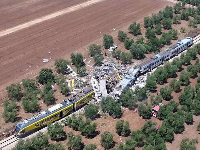Авария произошла на участке между городами Руво-ди-Пулья и Корато. По неизвестной причине поезда оказались на одном пути и столкнулись на полном ходу - каждый двигался на скорости в 100-110 км/ч.