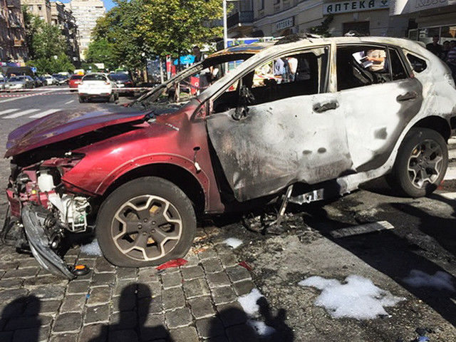 Кроме того, украинские СМИ публиковали видео, на которых видно, как горит автомобиль, как его тушат пожарные и как на месте работают сотрудники полиции.